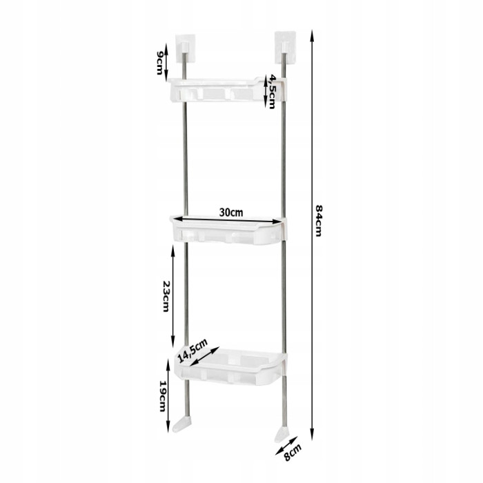 The capacious shelves will accommodate various small items. With the organiser, you will utilise unused space above the toilet, creating plenty of additional storage space for detergents, washing powder, shampoo, bath gel etc.